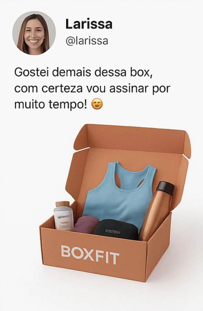 Descubra a Box Fit: a assinatura mensal que cuida de você de dentro pra fora. Receba produtos saudáveis, suplementos e inspirações de autocuidado, escolhidos conforme seu perfil. Saúde, beleza e equilíbrio em você